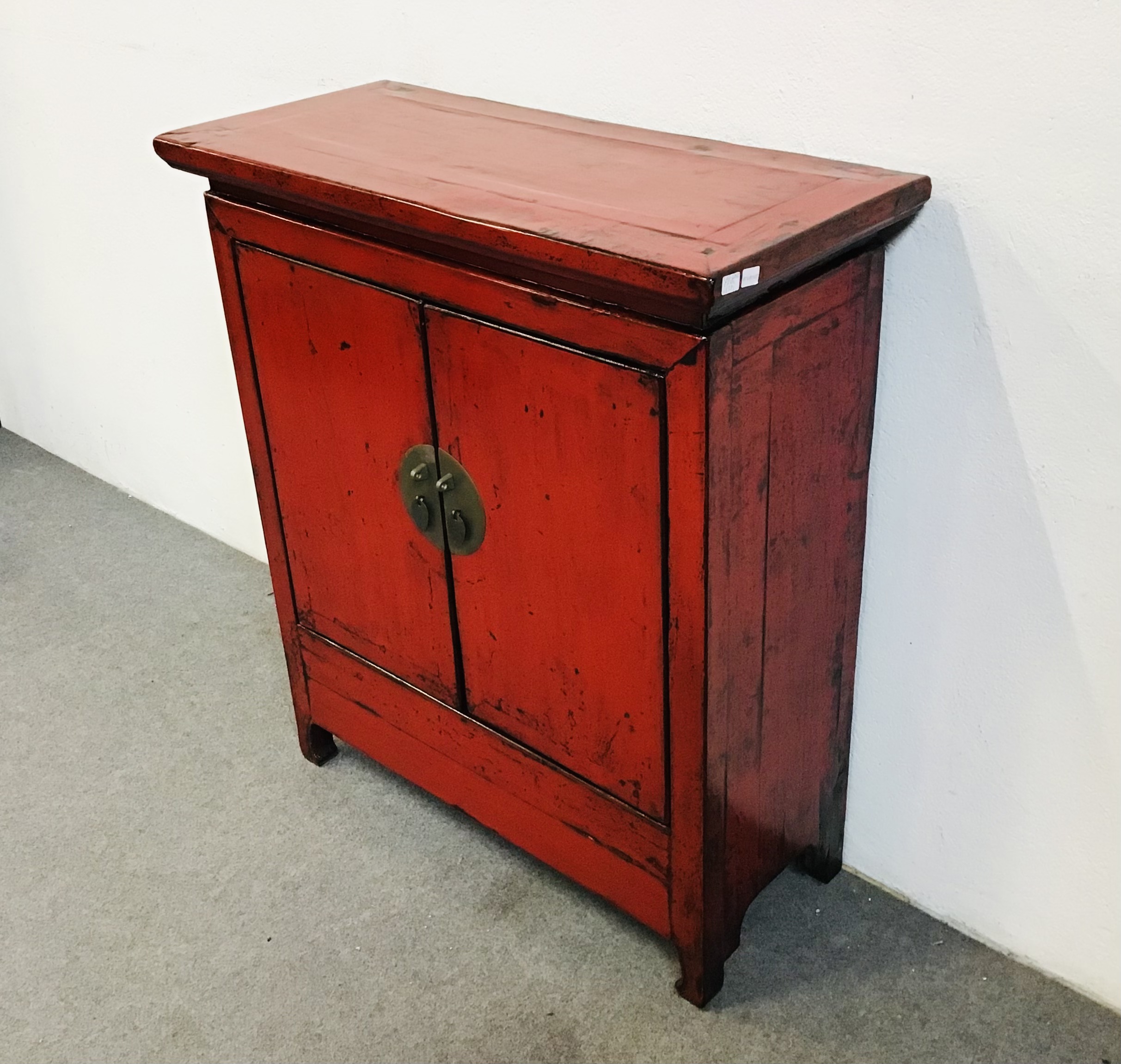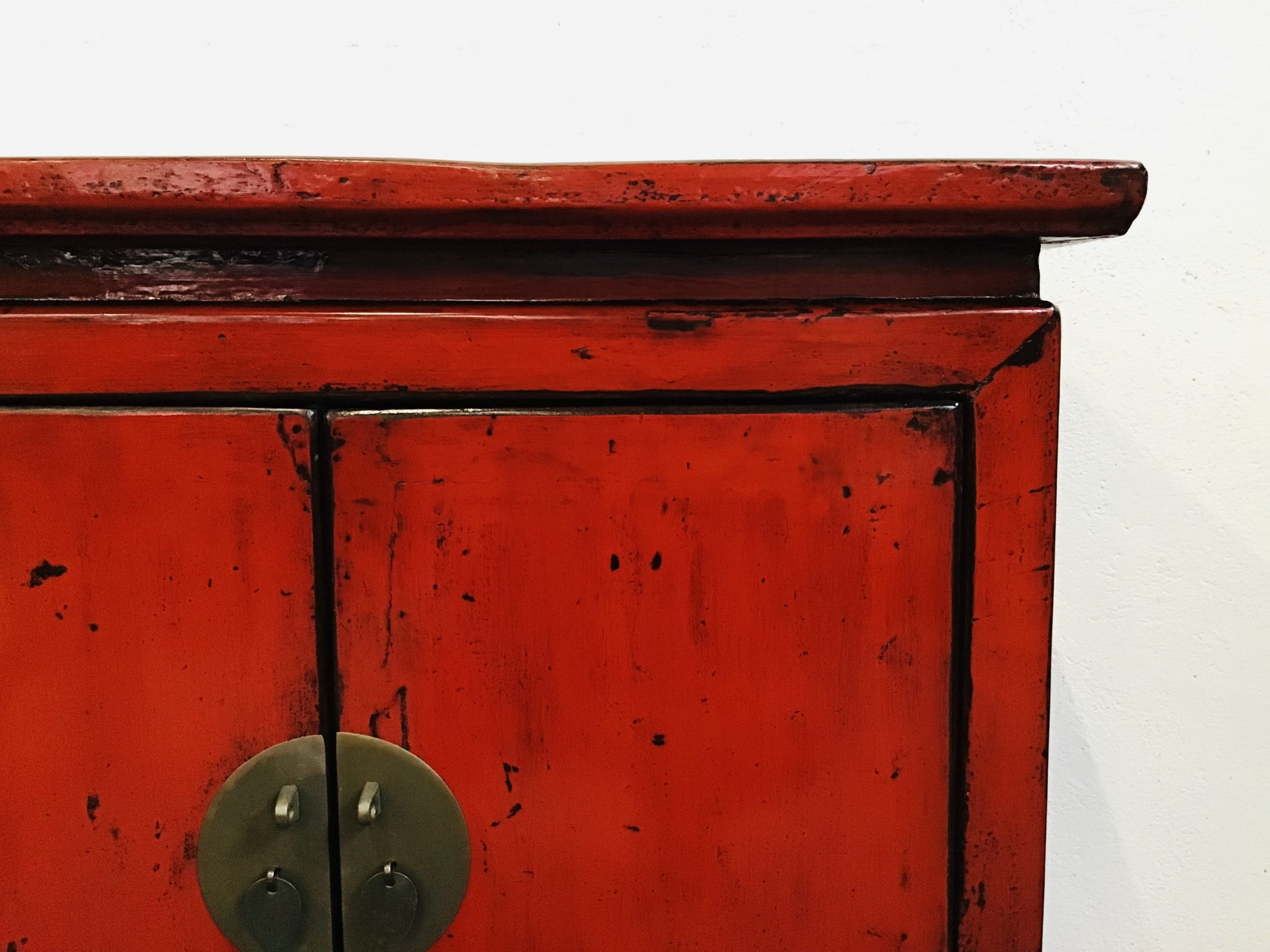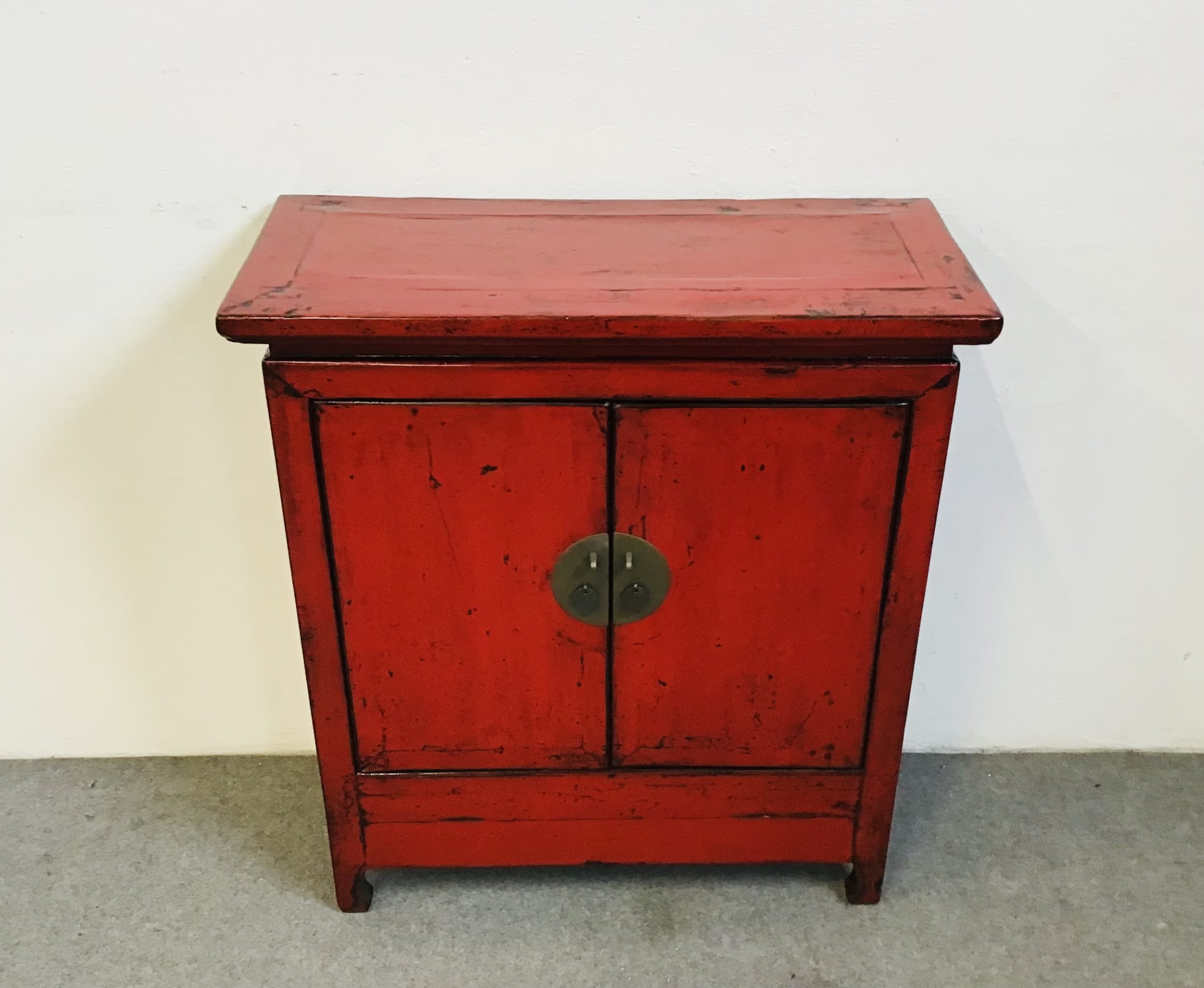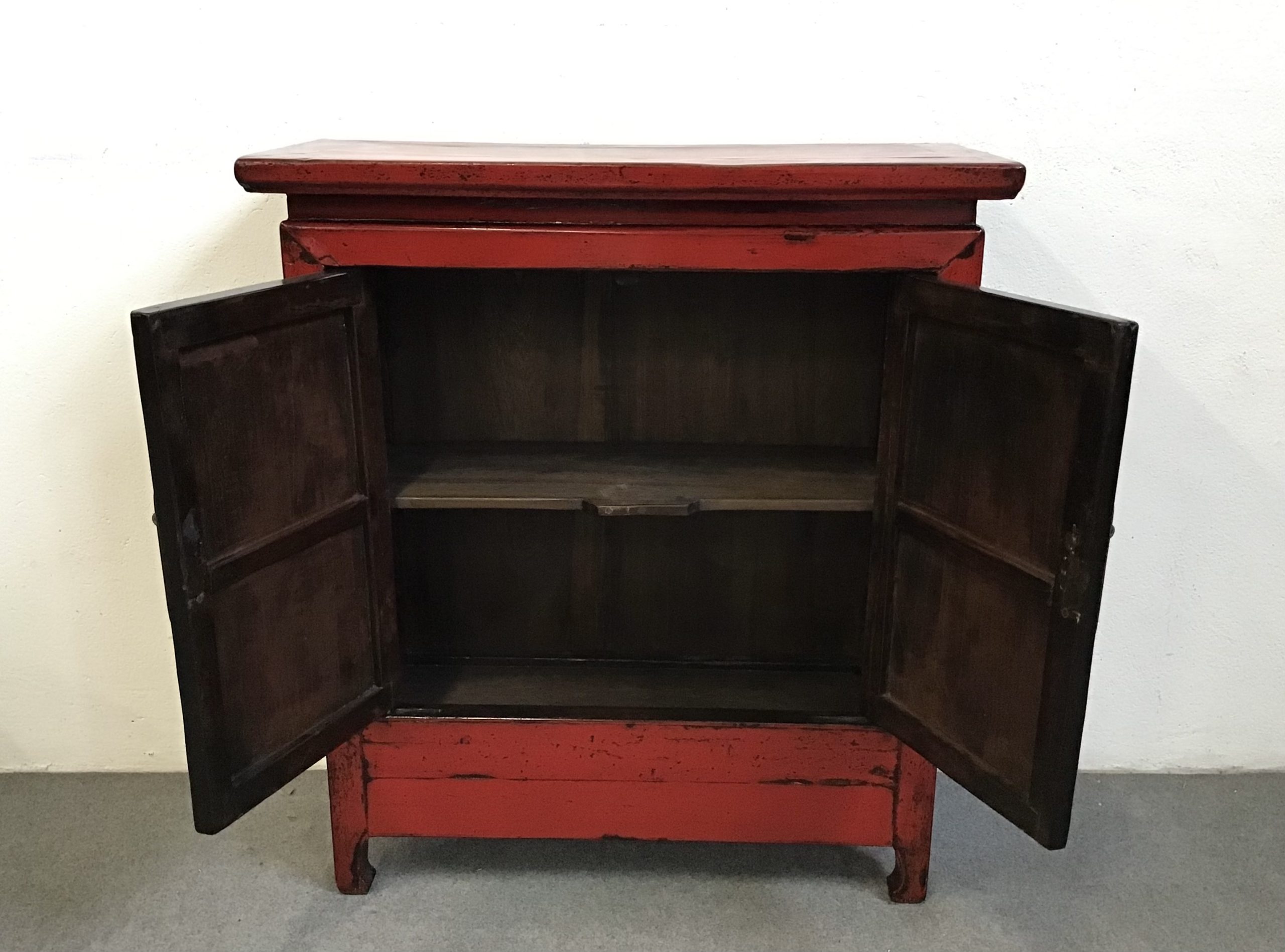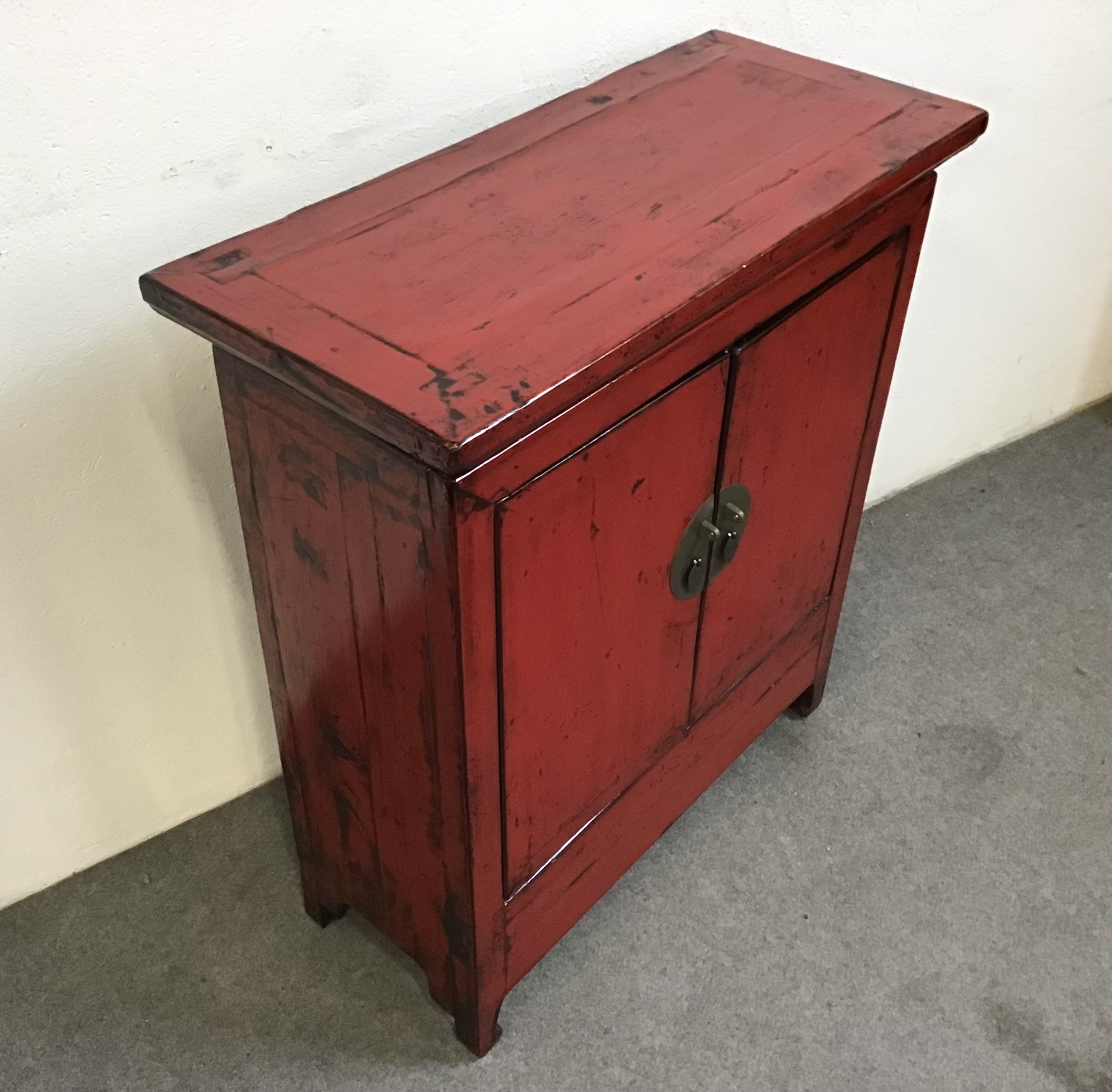 Armadietto di dimensioni contenute in legno massello di olmo con laccatura rossa di buona qualita’