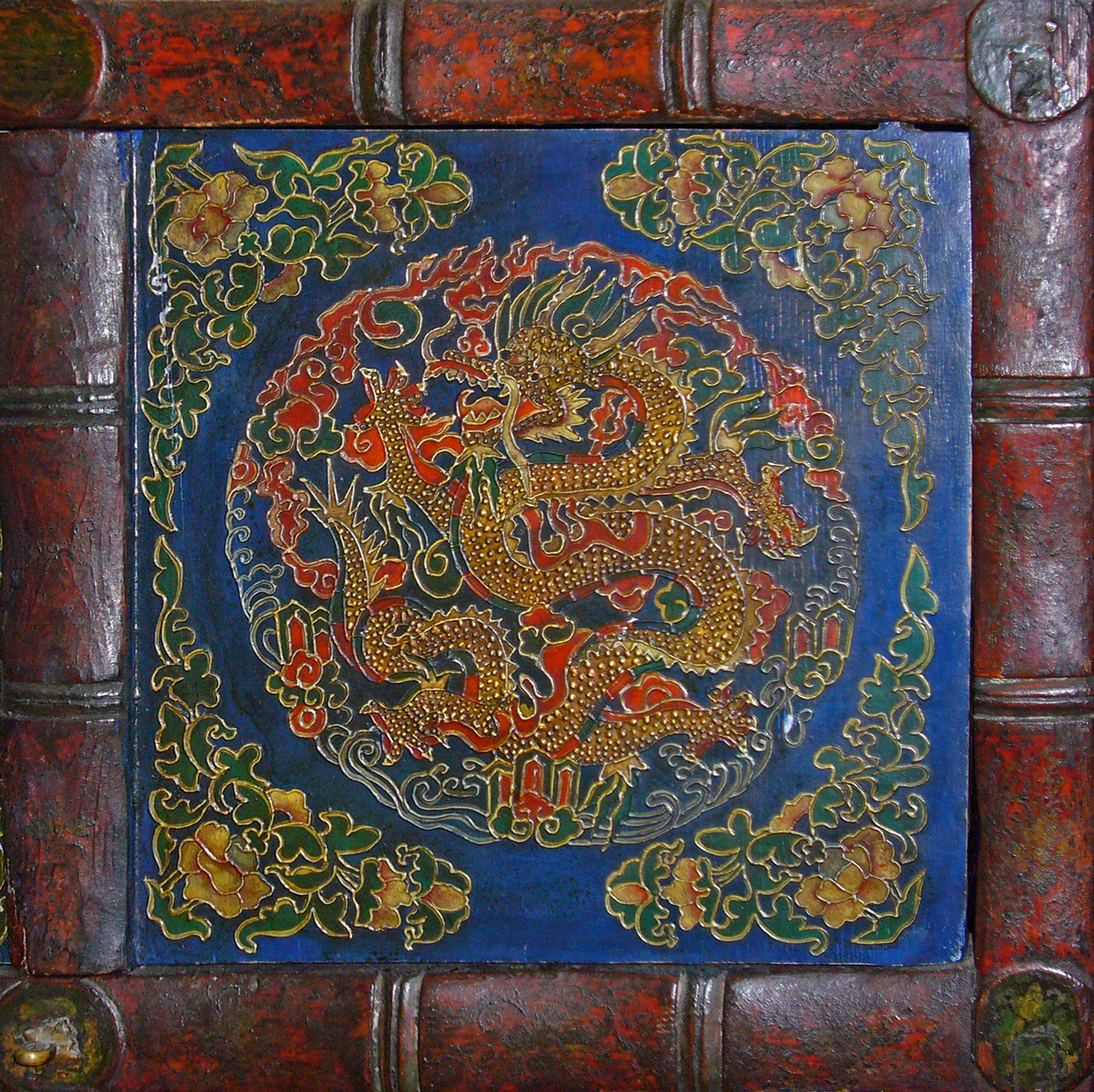 Nelle quattro ante sono dipinti in rilievo ,con tecnica raffinata,quattro draghi.