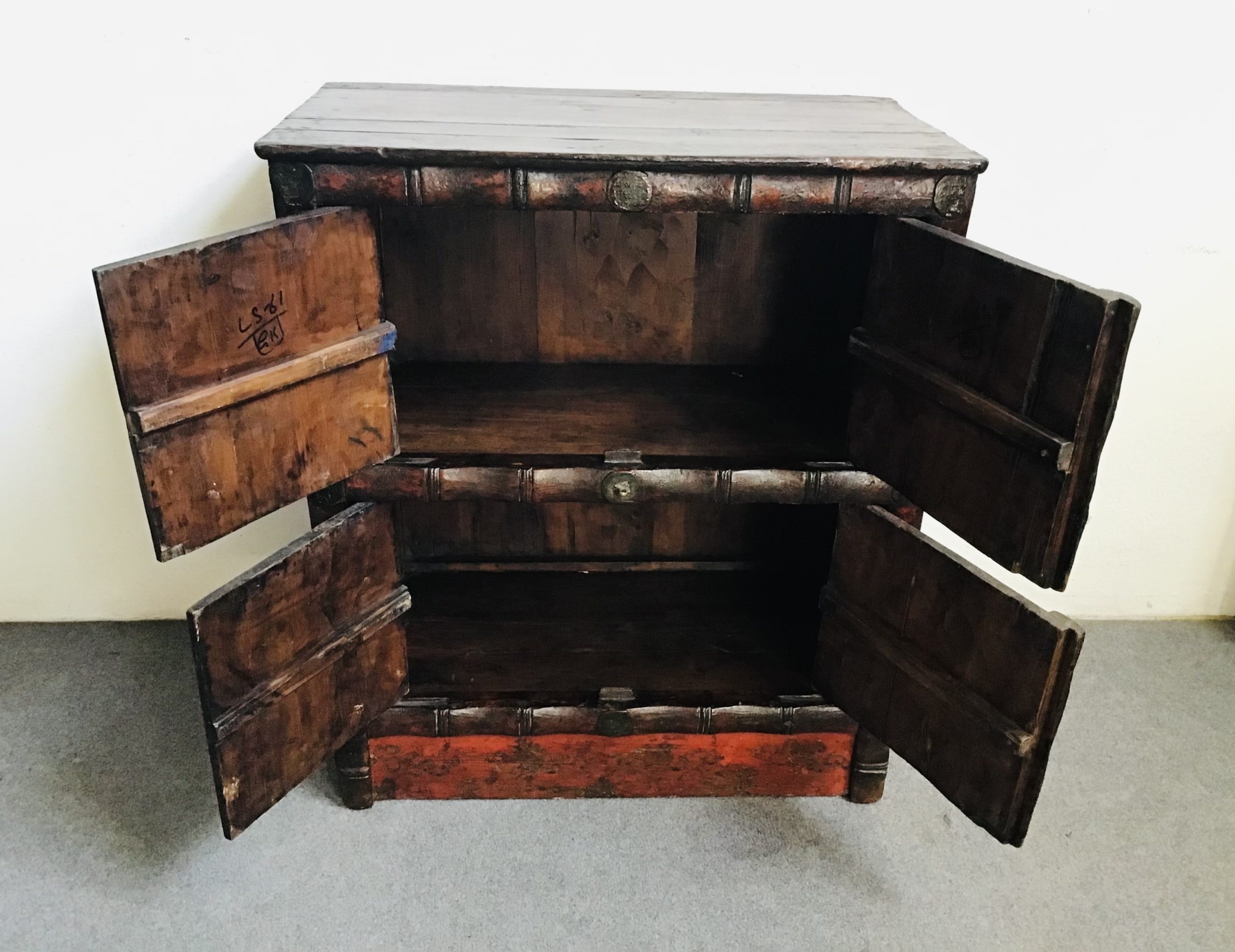 Madia monastica tibetana in conifera Himalayana e policromia originale d’epoca.