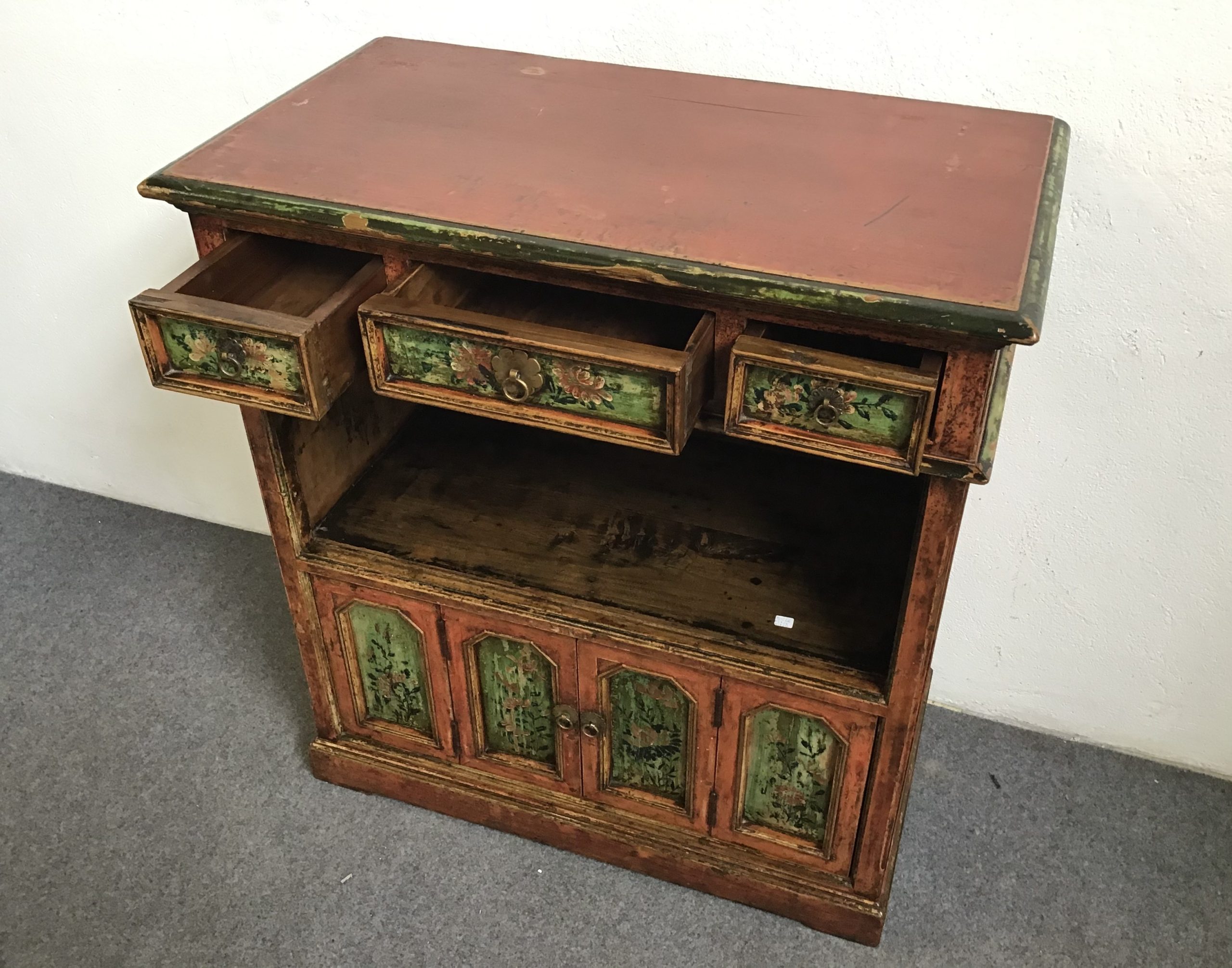 Legno di olmo con policromia originale d’epoca ancora molto presente.