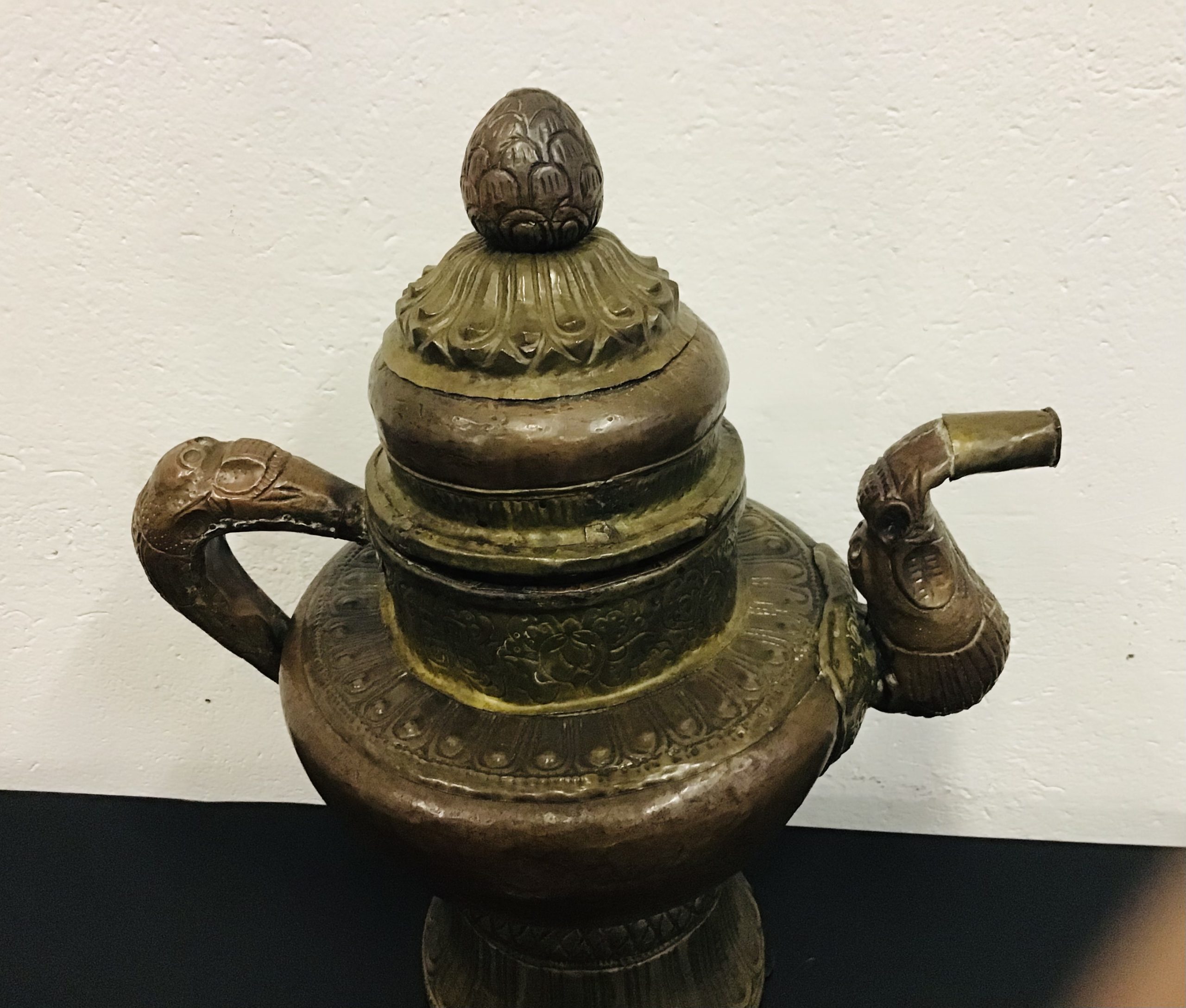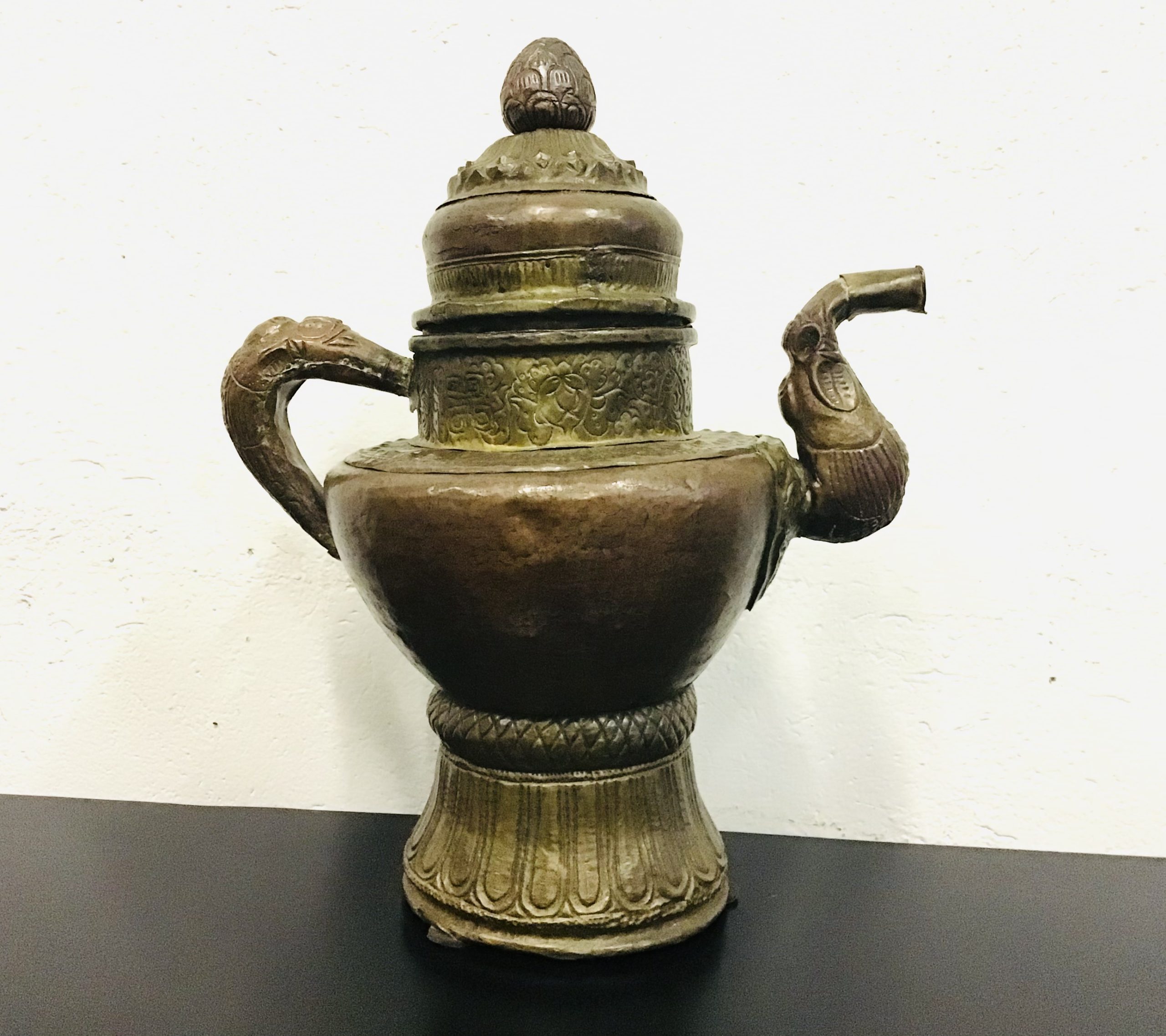 Grande teiera in rame e ottone sbalzato.questo tipo di utensile veniva usato nei monasteri per servire il the.